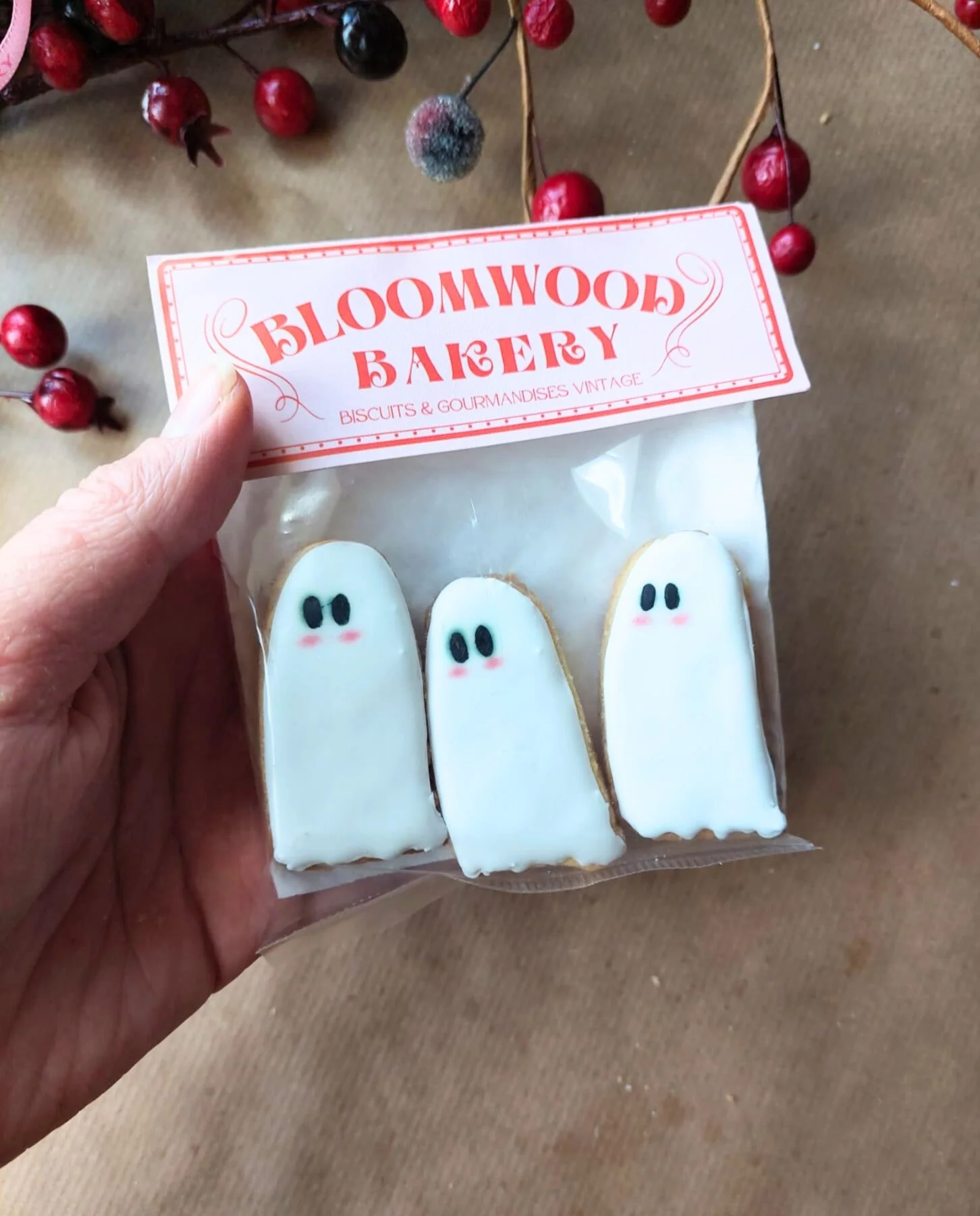 Craquez pour notre plaquette de biscuits décorés à la main d'halloween, mettant en scène un trio de fantômes adorables et inséparables. Parfaits pour partager ou offrir, ces biscuits gourmands apportent une touche fun et originale à vos moments sucrés !