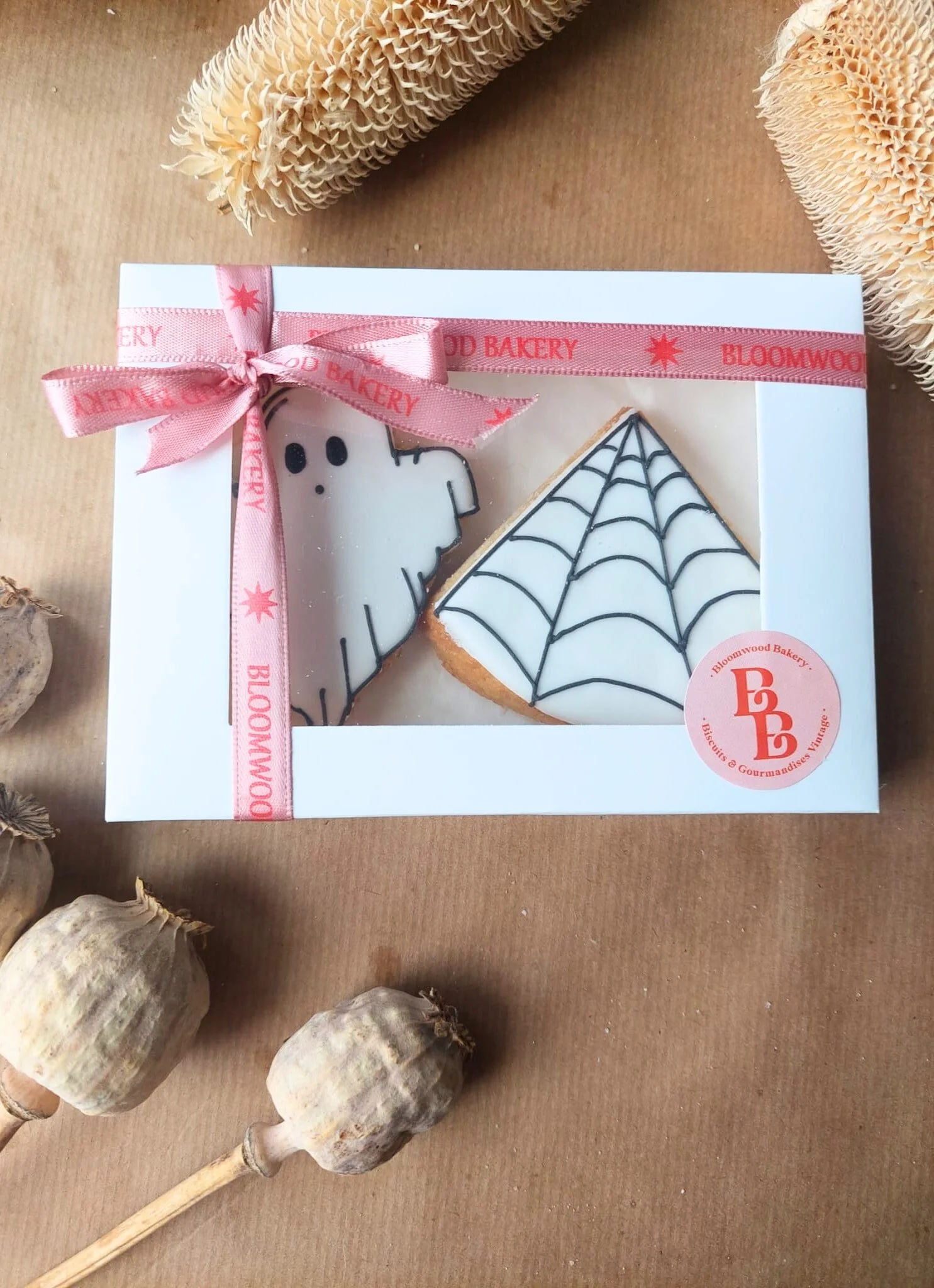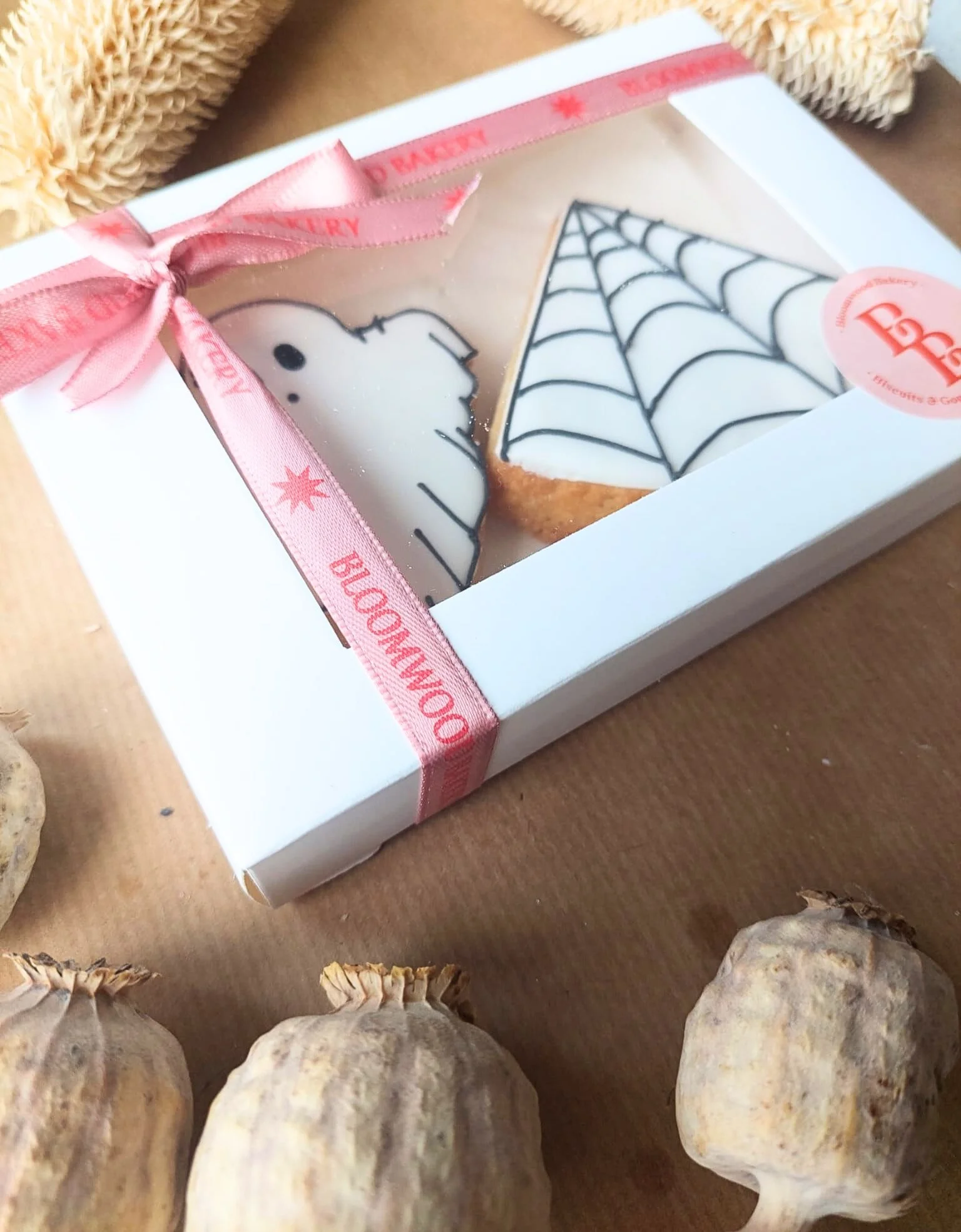 Découvrez notre coffret de biscuits Halloween, décorés à la main avec un adorable fantôme et sa toile d'araignée. Parfaits pour ajouter une touche gourmande et effrayante à vos célébrations, ces biscuits allient créativité et saveurs irrésistibles !
