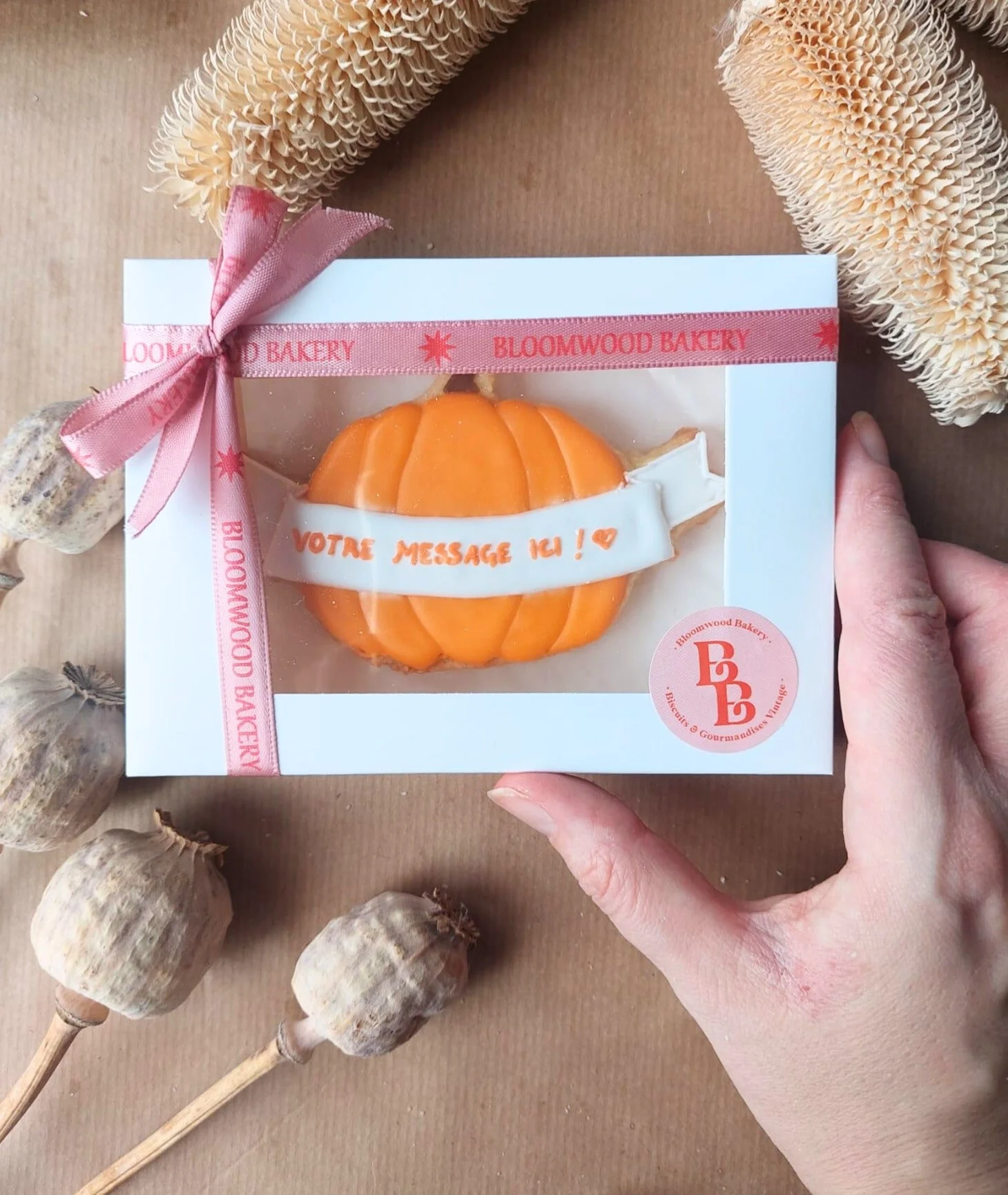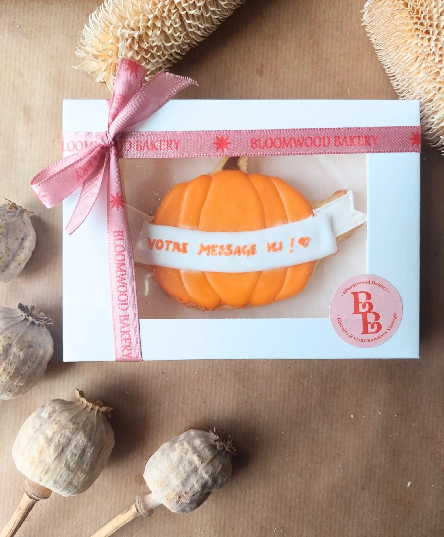 Ce biscuit citrouille d'automne, décorés à la main personnalisable apporte une touche gourmande et originale, parfaite pour célébrer la saison avec style et douceur !